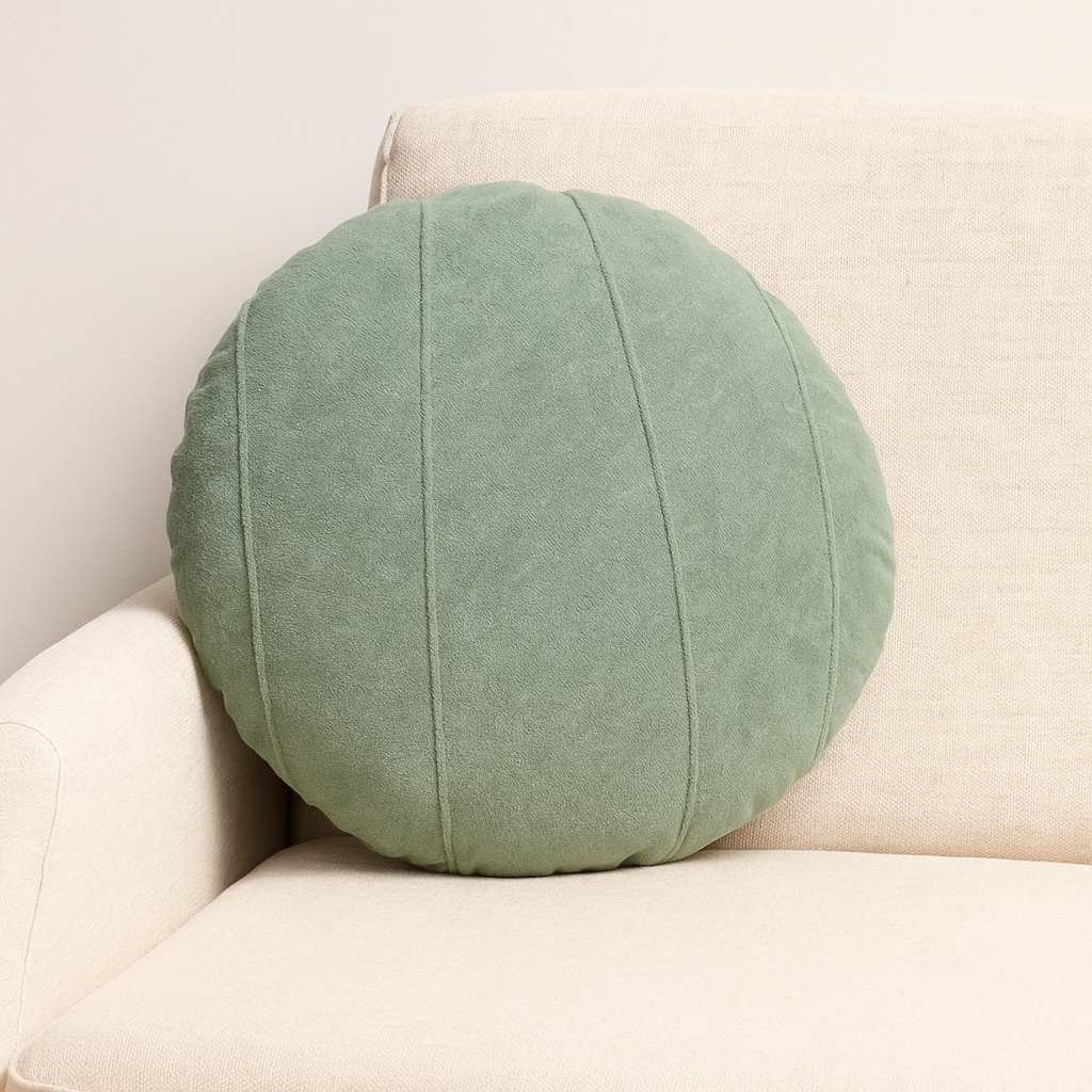 ALMOFADA REDONDA COMPLETA TECIDO BOUCLE COM REFIL COR VERDE CLARO 43CM