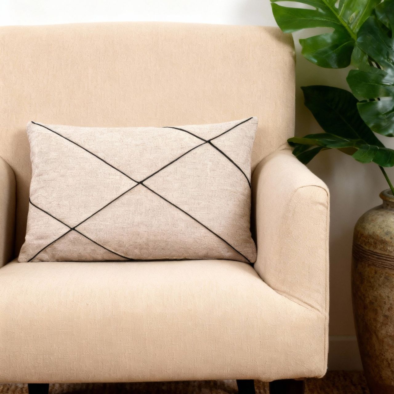 01 Capa de Almofada Drapeada Linho Cru
