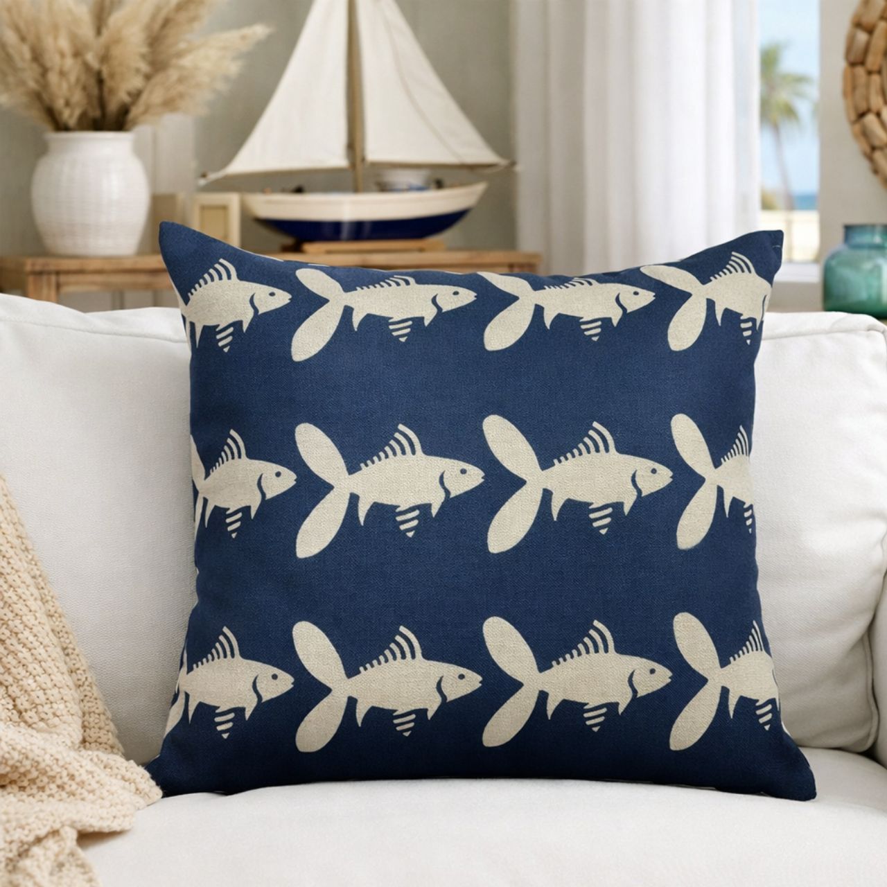 Capas de Almofadas em linho misto com inspiração no estilo marítimo são perfeitas para trazer frescor e aconchego ao ambiente. O linho, por ser um tecido natural, transmite leveza e sofisticação, enquanto a temática do mar adiciona um toque relaxante e elegante à decoração, perfeita para compor com estilo salas e ambientes externos.