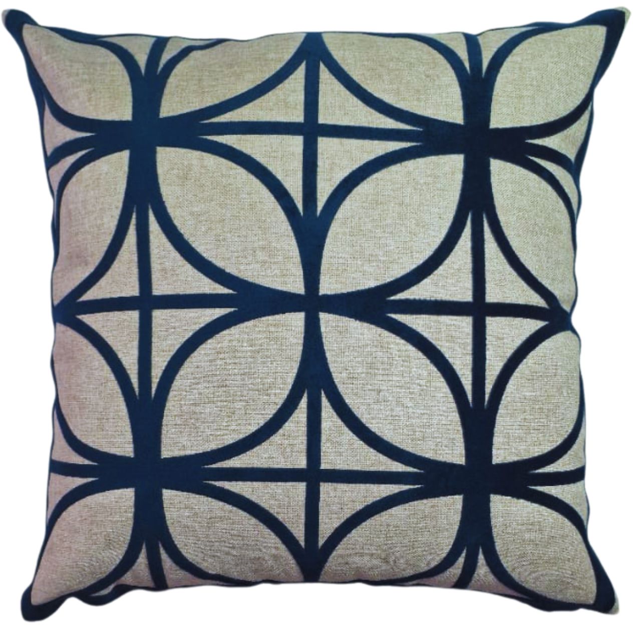 CAPA DE ALMOFADA LINHO APLIQUE BOUCLE AZUL MARINHO 50X50 CM