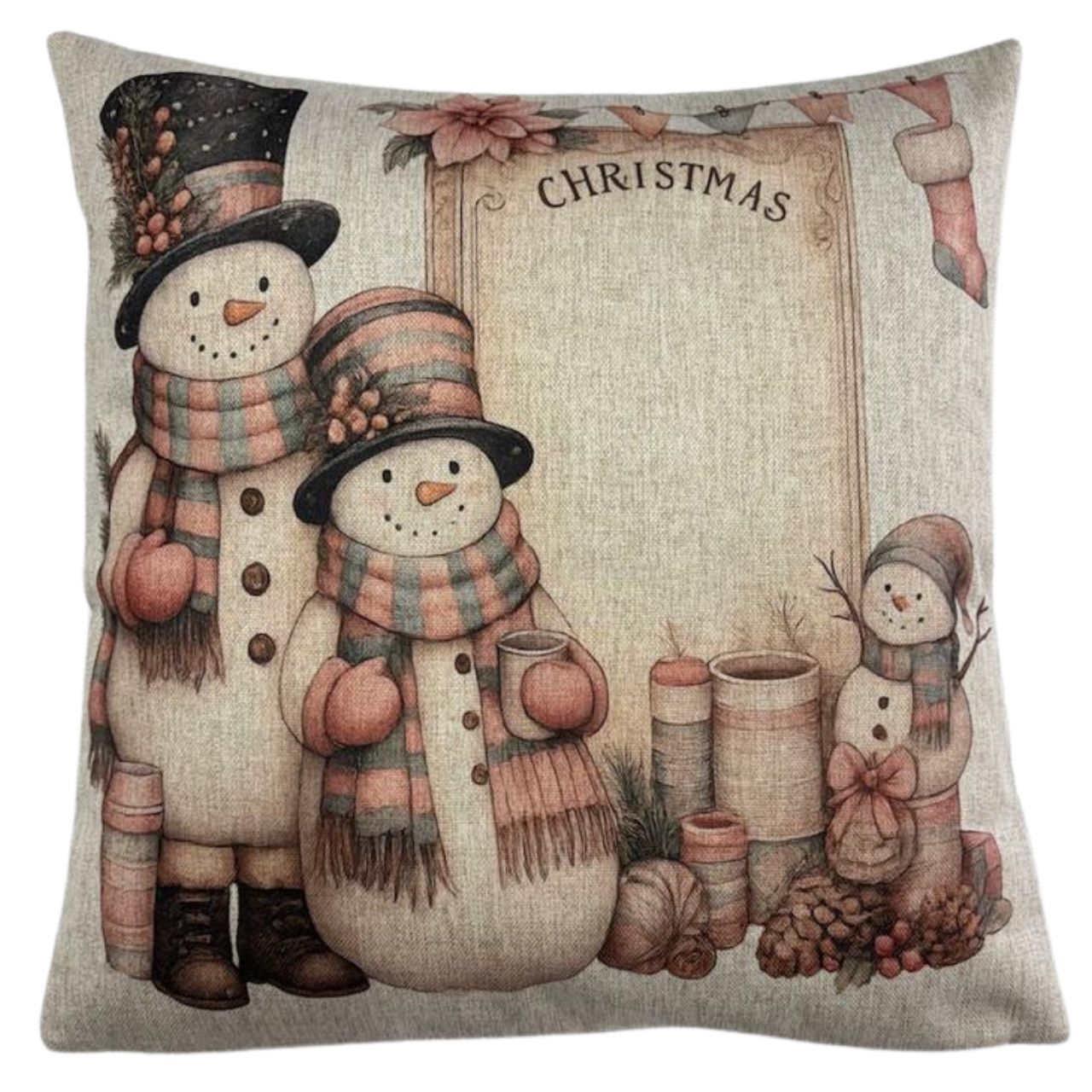 CAPA DE ALMOFADA LINHO BONECOS DE NEVE NATAL ROSE 45x45CM