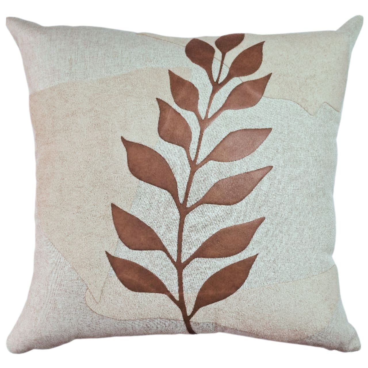 Capa de Almofada em Linho com Aplique em Couro Ecológico – 45x45cm