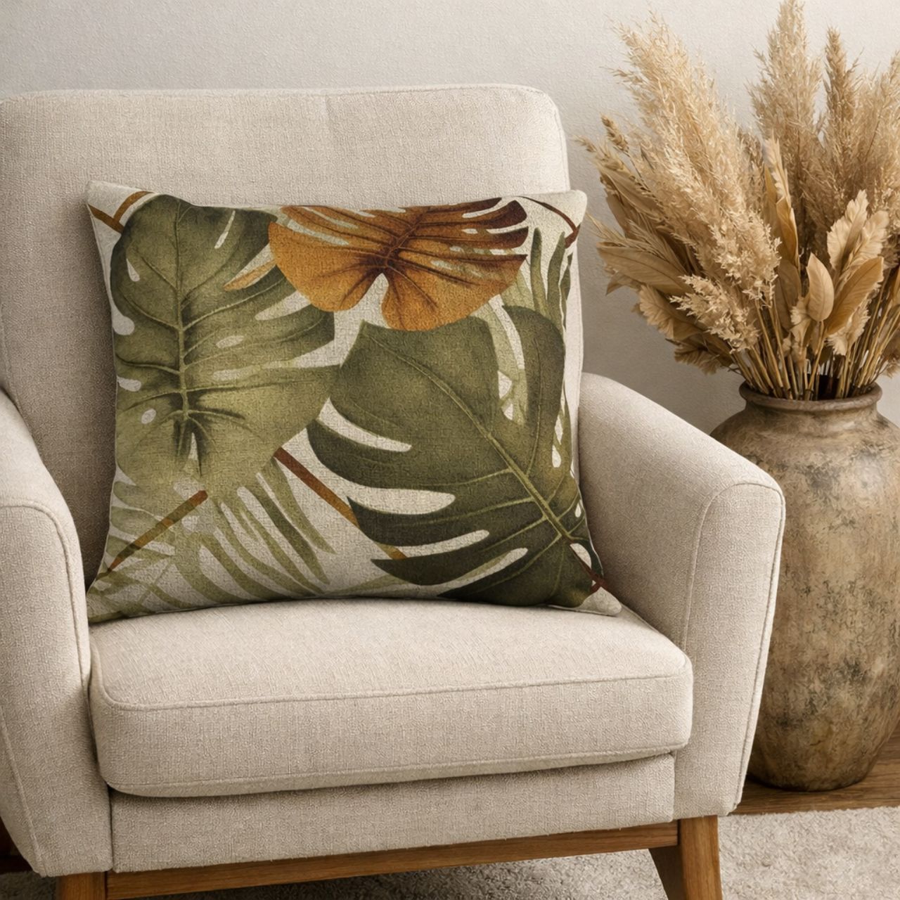 *Capa almofada 45x45, Capa almofada decorativa, costela de Adão verde, mostrada, folhagens, jardim.