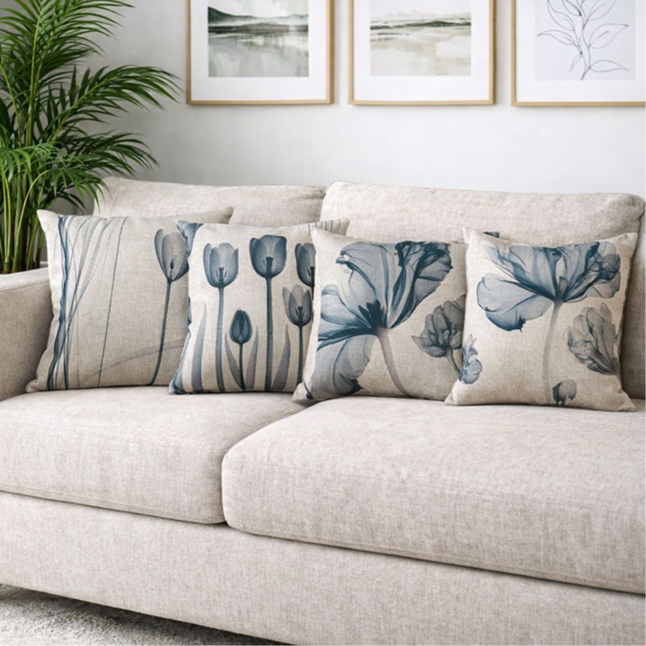 Capa de Almofada decorativa Linho Estampa FLORAL TULIPA azul. Sofisticada Decoração Sala Recepção Ambiente Interno Elegância