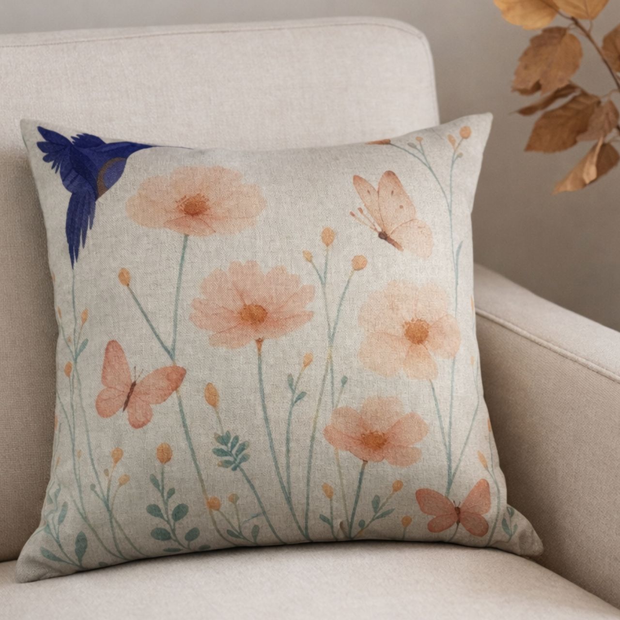 Capa de Almofada decorativa Linho Estampa FADAS rose. Sofisticada Decoração Sala Recepção Ambiente Interno Elegância