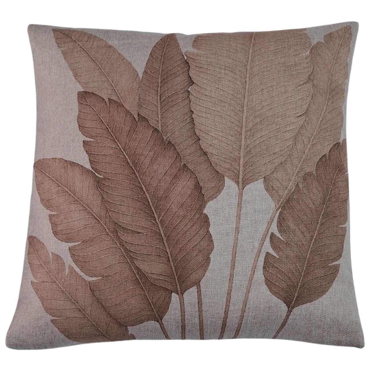 CAPA DE ALMOFADA LINHO FOLHAS RAMOS TERRACOTA 45X45CM