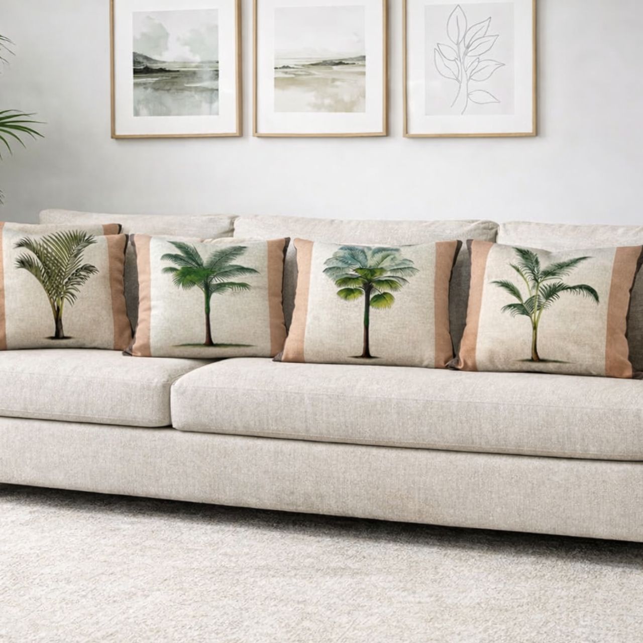 Ideal para composições em sofás, poltronas, camas ou áreas de descanso, combinando facilmente com almofadas lisas ou outras estampas naturais.