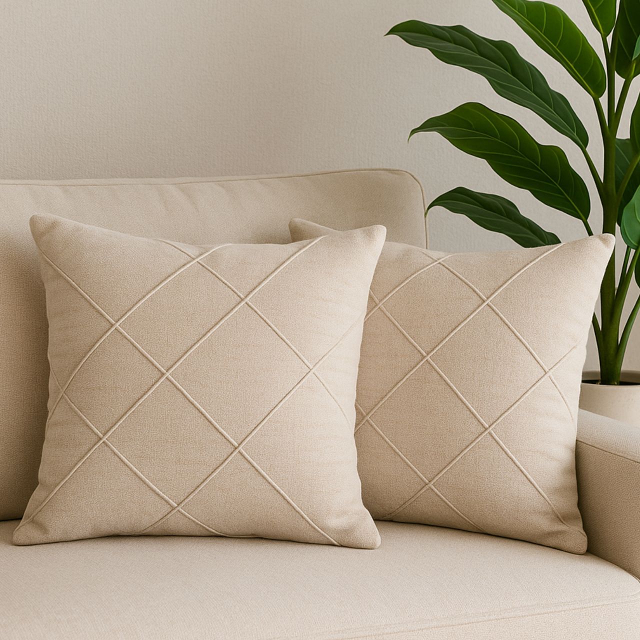 KIt contém: 02 Capas de Almofada Drapeada Linho Cru