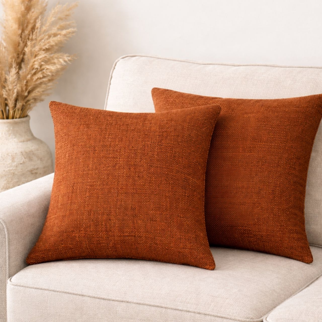 KIT 2 CAPAS DE ALMOFADA QUADRADA LINHAO TERRACOTA 45x45CM